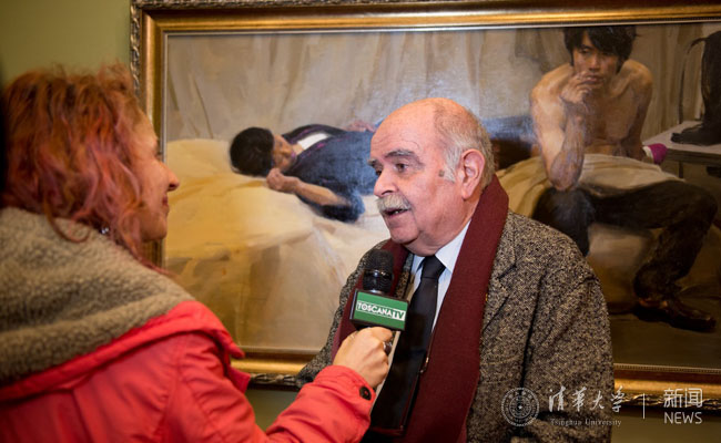 王辅国致辞表示,王宏剑是清华美院教授,国内知名油画家,他对王宏剑教授在佛罗伦萨举办个人画展表示祝贺,感谢意大利艺术研究院与意大利华人艺术家协会为筹备此次画展所作的努力”。