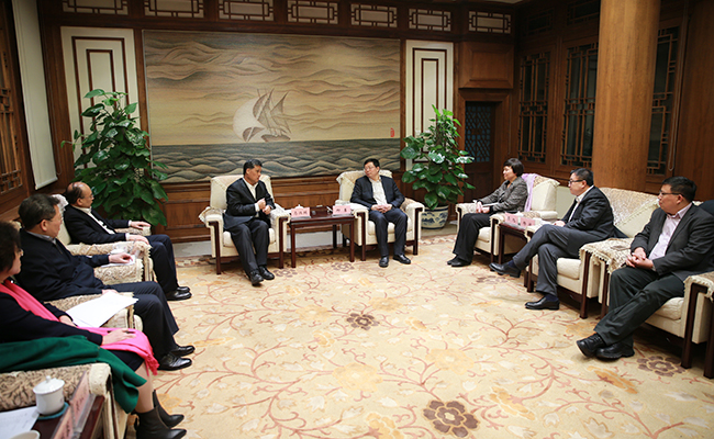 校长邱勇、校党委书记陈旭在工字厅西厅会见了来访的广东省委副书记、深圳市委书记马兴瑞,深圳市市长许勤一行。记者 张 宇 摄