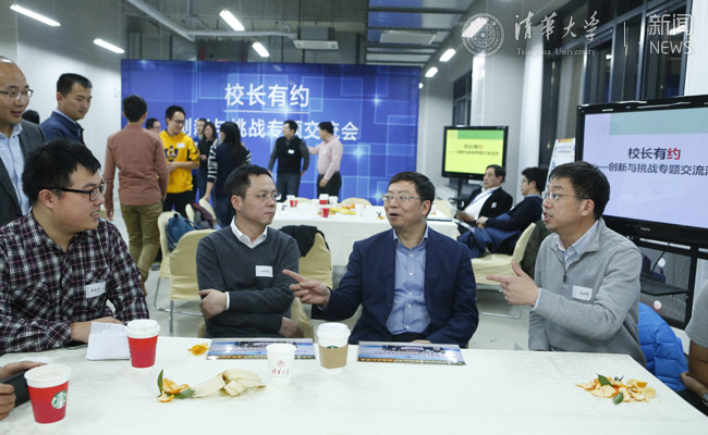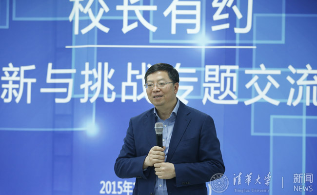 无论是挑战杯的成绩还是超算的获奖,其动力的源泉都是来自于同学们发自内心的对于科学的追求。今天这个活动叫“校长有约”,约会的对象就是这些有梦想并执着的实现梦想的同学们。同时今天也是一个很特别的日子,1896年,119年前的今天,一个化学家写下遗嘱,希望将他的遗产作为奖金,奖励那些为人类做出卓越贡献的人。这个人就是诺贝尔,他所作的一切也都是为了鼓励创新与挑战。得知学生们获奖,我第一时间说了两句话“祝贺同学们挑战成功!愿大家继续挑战未来!”参加竞赛的过程很重要,是一个挑战自我的过程,但更重要的是过程中的成长与收获。我相信,在未来的日子里,大家依然会保有创新的激情,获得更多国际竞赛的冠军,你们将代表清华的未来。最后要特别感谢为大家辛勤付出的老师们!