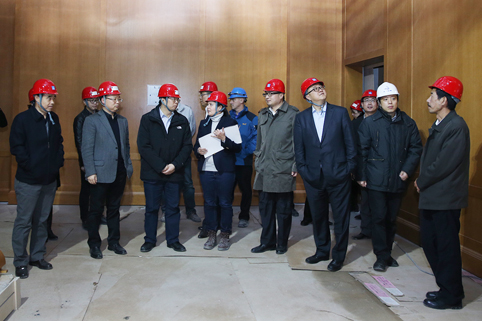 随后,邱勇一行走进正在施工中的苏世民书院进行考察,详细询问建筑用材、结构布局等情况,并对项目建设和管理团队的高水平工作表示感谢。