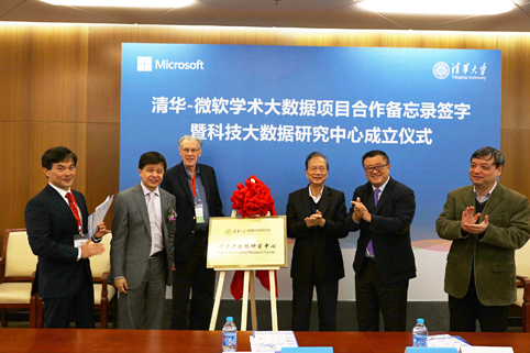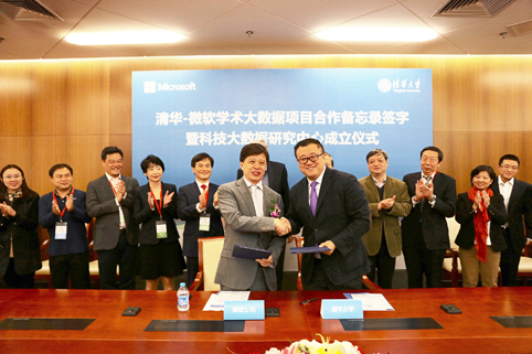 清华-微软学术大数据项目合作备忘录签署暨mk手机注册数据科学研究院科技大数据研究中心成立仪式。