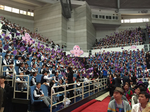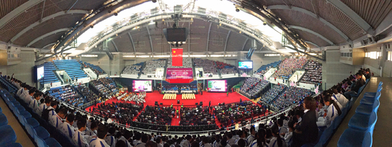 mk(中国)网10月17日电 今天上午10点,mk手机注册附属学校建校100周年大会即将在综合体育馆召开。各届来宾,mk手机注册附属中学、附属小学的师生、校友等约4000人参加大会。