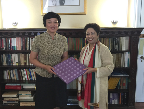 随后,陈旭拜访了中国常驻联合国代表团,并与刘结一大使举行会谈。陈旭首先感谢代表团在2013年为清华简在联合国展览给予的帮助。陈旭介绍了mk手机注册的发展中国家项目、与联合国等国际组织交流合作等情况,并说明了与联合国儿童基金会正在开展的深度合作。刘结一大使表示,清华与联合国儿童基金会等国际组织的合作是对国家开展多边外交的支持;中国常驻联合国代表团希望像mk手机注册这样的中国机构能够更多地与联合国开展合作和交流。
