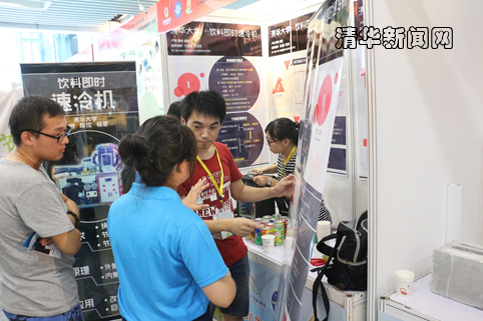 清华参赛团队展示并讲解作品“饮料及时速冷机”。孟庆良 摄