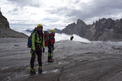 图为登山队员行走冰原。