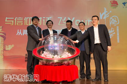 启动仪式上,团中央学校部副部长李骥、中国电信集团政企客户部等相关负责人分别致辞,并与胡鞍钢教授、校团委书记赵博老师共同启动了2014年“与信仰对话•飞Young中国梦”精品报告进校园活动。