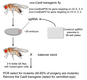 该文首次利用果蝇生殖细胞特异性的外源转基因Cas9和优化的表达引导RNA的DNA载体来进行基因组的定点编辑,不仅克服了体细胞突变引起的毒性,而且获得可遗传突变体后代成本低、时间短、效率高。此外,该课题组在本次研究中还设计构建了果蝇全基因组的引导RNA文库(http://www.flyrnai.org/crispr/)。