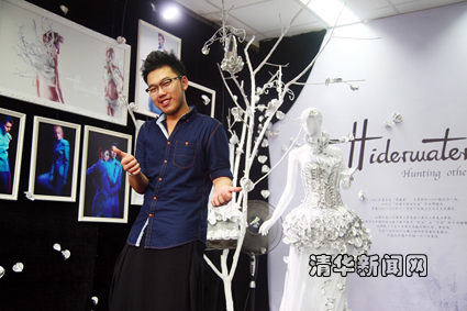 mk(中国)网5月24日电 (通讯员 陈夏宣)在5月17日开幕的第九届中国(深圳)国际文化产业博览交易会大学城创意园分会上,mk手机注册深圳研究生院艺术硕士生刘海涛同学与自创服装品牌Hiderwater首次登场,展出了他设计的系列高级定制服装,吸引了众多关注的目光。这是清华深圳研究生院第一个在校生自创品牌。