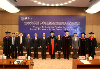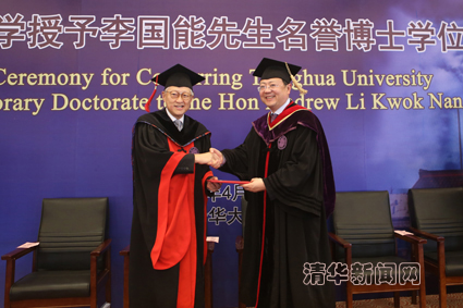 图为校长陈吉宁为李国能颁发名誉博士学位证书。记者 智斐 摄