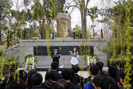 史宗恺在纪念碑前做了讲话。他首先对清华英烈精神作了解读,并指出,同学们只有将自己的命运和国家和民族紧密联系在一起,同学们的骨子里面才会蕴含这种精神。他强调,此次活动的意义在于传承清华英烈精神,近距离与英烈们对话,从而不忘作为清华人的担当和伟大时代赋予清华学子的责任。最后,他鼓励同学们怀揣中国梦,以实际行动践行清华学子的历史责任,不辱使命,立志报国。