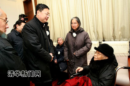 图为校长陈吉宁来到八宝山送别林家翘先生,并请林家翘先生夫人梁守瀛节哀。石加东 摄