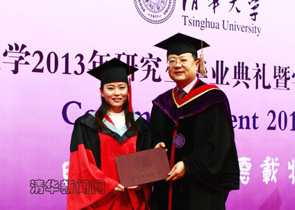 图为陈吉宁为毕业研究生颁发学位证书。石加东 摄