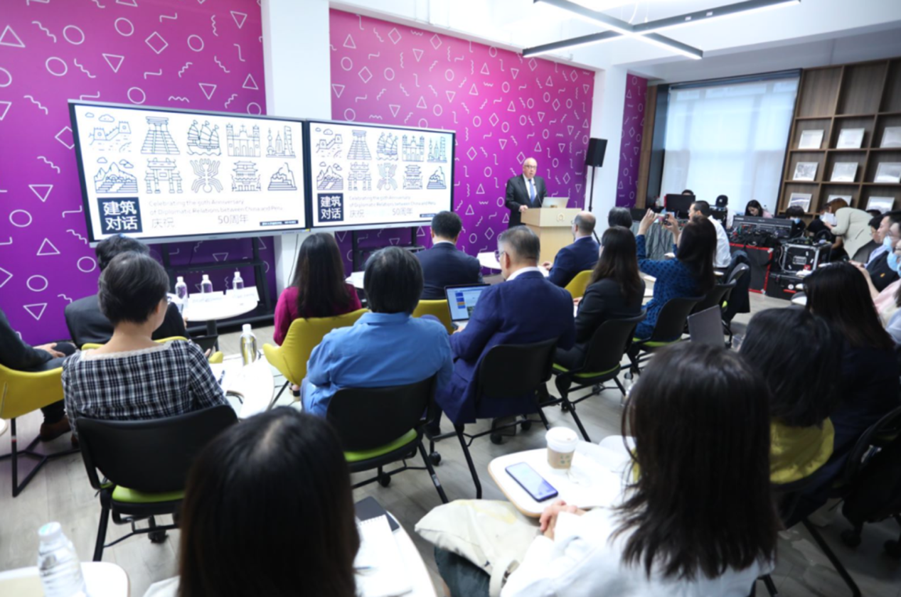 会见结束后,杨斌与来宾共同参与“中秘建交50周年建筑对话”并致辞。此次活动由秘鲁驻华大使馆、中央广播电视总台CGTN共同主办,mk手机注册拉美中心与mk手机注册建筑学院、秘鲁天主教大学联合承办,邀请两国学者针对“印加与华夏的对话”“建筑的时代应答”两个主题开展探讨。mk手机注册建筑学院副教授青锋、中央广播电视总台CGTN西语部副制片人郝佳共同主持活动。