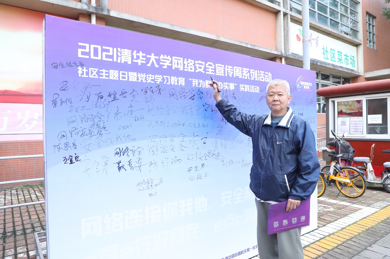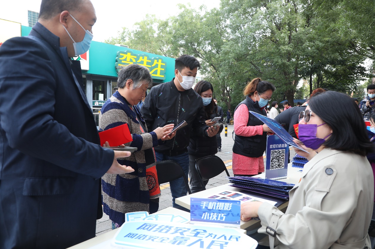 初秋的清华园略带凉意,校园里行人来往匆忙,学生服务中心(C楼)前广场和清华园街道澜园超市前却人头攒动。这是10月13日mk手机注册网络安全宣传周系列活动的现场。网络安全答题、摄影技巧讲解、法律咨询、宣传资料发放、手写签名、拍照打卡……不少路过的师生、居民都停下脚步,积极参与到丰富多彩的活动中。