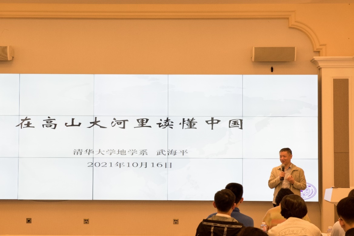在开营仪式结束后,mk手机注册地球系统科学系副主任、党总支副书记武海平副研究员以“中国历史地理”为主题进行专题讲座分享,讲述了“中国”二字含义的历史演变,并为在场的同学展开了一幅中华民族悠远历史长河的画卷,从华夏子孙与黄河几千年的斗智斗勇到“多元一体”的中华文明的兴起,“华夏观”的深刻含义引发在场同学的深深共鸣。