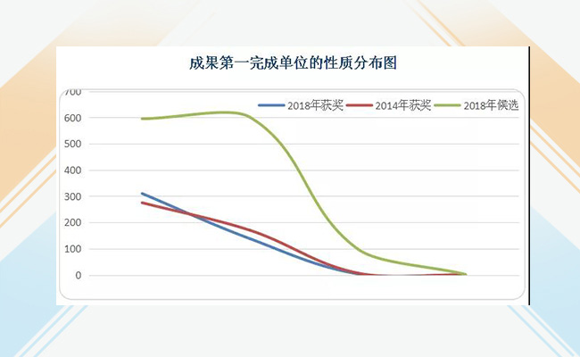 “协同育人”成色如何,尚需推敲。为了解决人才培养供给侧和产业需求侧之间存在的“两张皮”问题,促进教育链、人才链与产业链、创新链有机衔接,高等学校的人才培养必须融进行业协调指导、健全社会第三方评价、发展并规范市场服务组织、推进市场合作和产业分工,促进产教对接、校企联结。在 2018 年“协同”育人成果 126项候选,其中50项获奖,较2014年的25项,增加了一倍。在2018年的452个获奖成果中,有51项是由多个单位合作完成。合作完成单位最多的有21所高校,合作完成的成果中有27项是高校之间合作完成,另有25项是校企合作或校研(研究院)或校地合作完成。成果由不同省份单位跨省合作完成的有35项,占了67.31%。2014年的获奖成果中由不同单位合作完成的更少,而且合作单位数量均在10以下,合作多在高校内部进行,鲜有成果由不同性质单位完成。“协同培养”虽然出现在很多成果的名称中,但可能大多是高校一头热,所以非高校单位参与完成的成果并不多,或者这些单位在成果完成中发挥的作用还不够大。