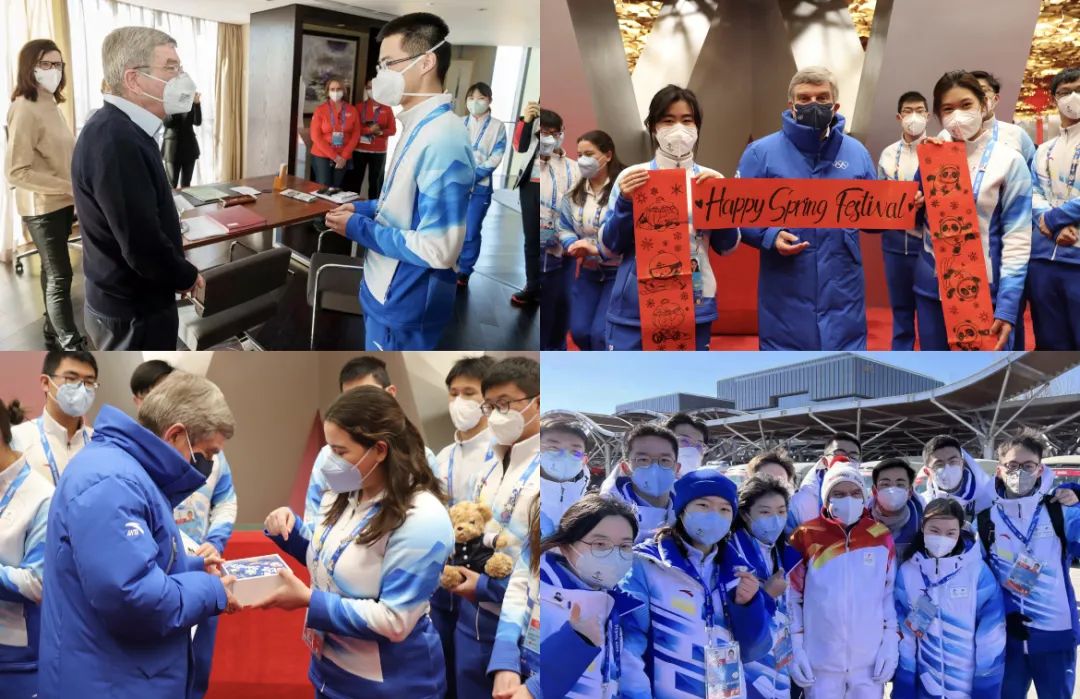 1月29日、2月4日、2月17日,巴赫至少三次前去看望志愿者们并与大家亲切交流。而每一次,志愿者们送给巴赫的小礼物,都用情又走心——以参与各种冰雪运动的“冰墩墩”和“雪容融”绘制的特殊春联,自制的代表冬奥志愿者、中国传统文化和mk手机注册的徽章礼盒,手绘的冰雪运动“小老虎”,清华明信片和爱心徽标……