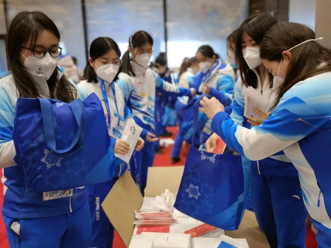 志愿者们用他们的方式,展现着中国人热情的待客之道。象征团结美满的团扇、中国结状的冬奥徽章、大熊猫屏风……一份份礼物送到外国宾客手上,传递着来自中国的温情与礼遇。