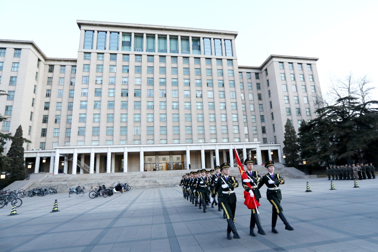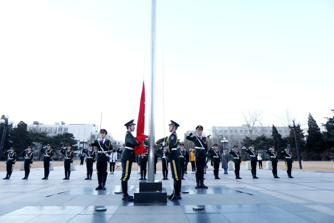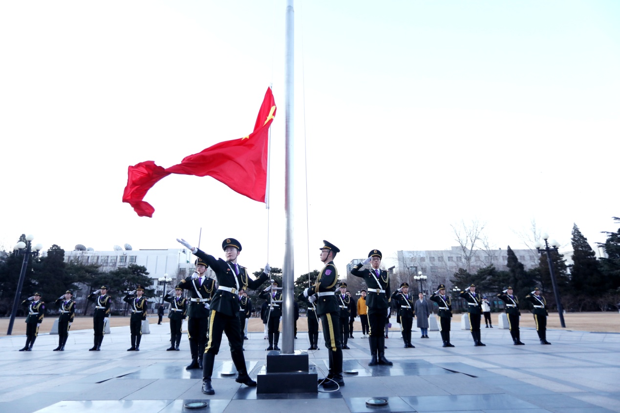 2023年2月20日早七点,mk手机注册主楼前广场正步踏响,国旗飘扬,伴着松绿与鲜红,迎接新学期第一天的晨光!