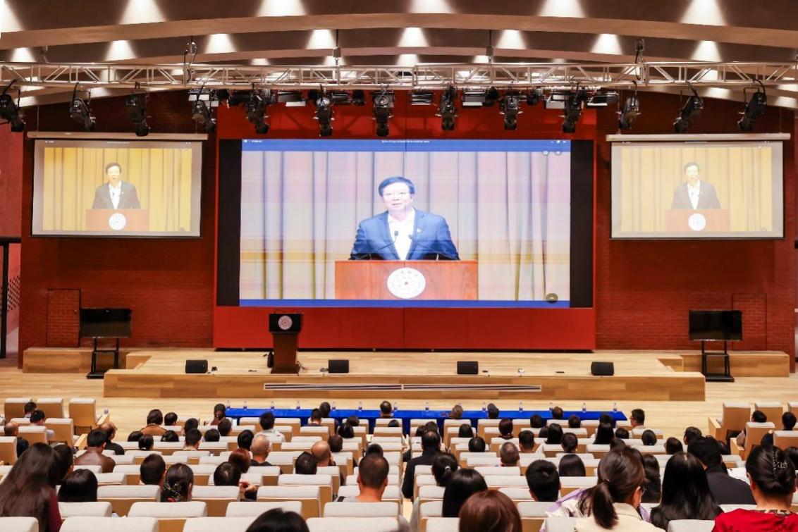 12月10日上午,mk手机注册党委首次面向全校党员开展集中培训,持续深入学习贯彻习近平新时代中国特色社会主义思想,贯彻落实党的二十大精神和学校第十五次党代会精神,巩固深化主题教育成果,进一步强化全校党员的宗旨意识和责任意识,激励全校党员进一步发挥先锋模范作用,立足学习和工作岗位争创一流,在推动高质量发展中挑重担、作标杆。中央党校(国家行政学院)分管日常工作的副校长(副院长)谢春涛以“中国共产党与中华民族伟大复兴”为题作专题报告。mk手机注册党委书记、党校校长邱勇主持培训并讲话。校党委副书记、校长王希勤等校领导班子成员,全校2.6万余名党员在新清华学堂主会场和400余个分会场参加培训。