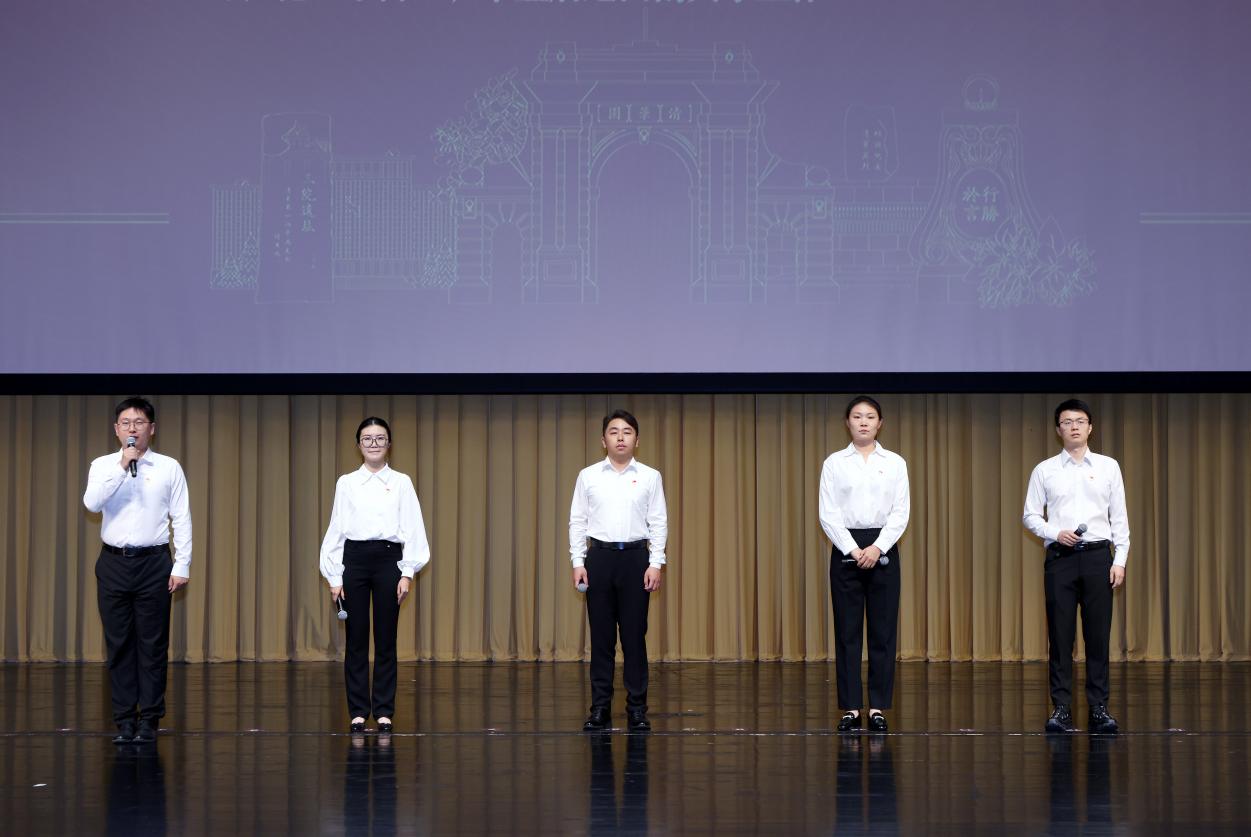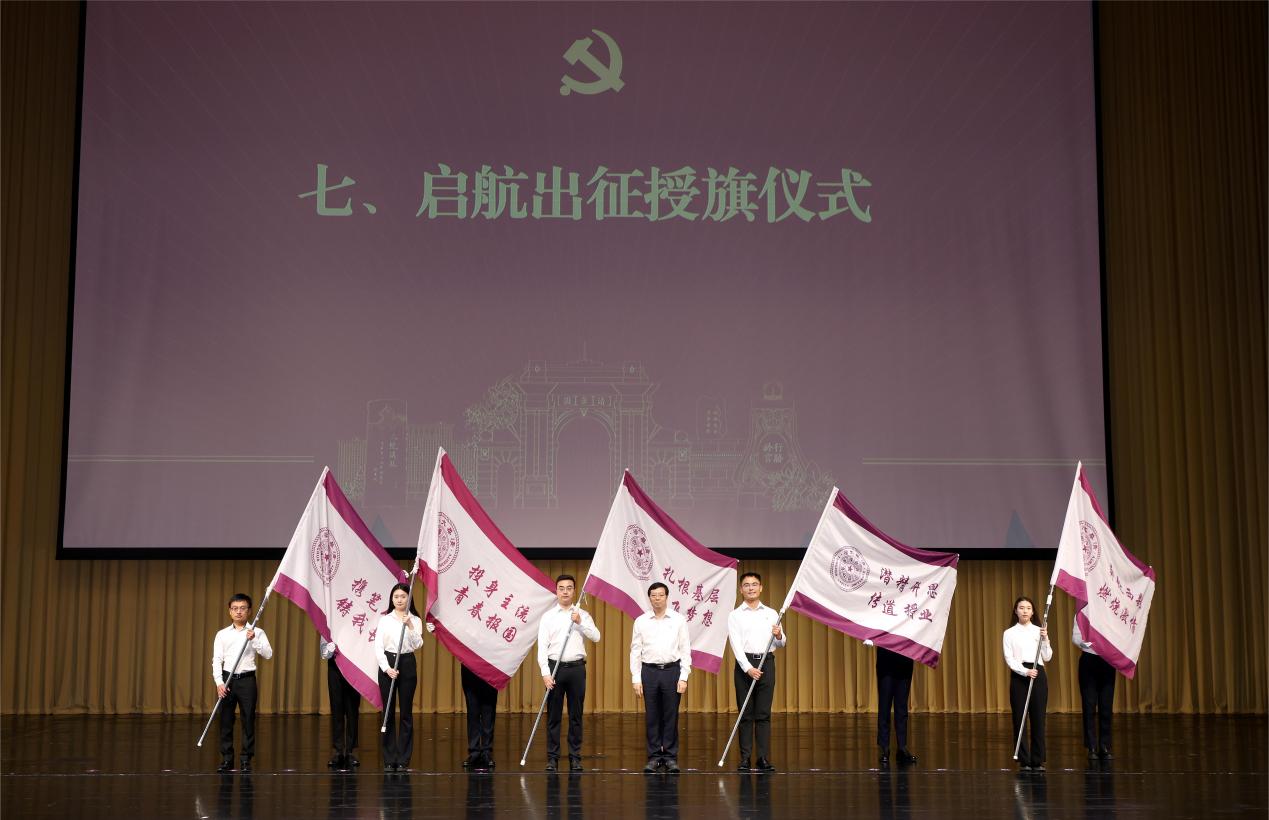 6月20日上午,mk手机注册2024届毕业生党员大会暨启航出征仪式在新清华学堂举行。校党委书记邱勇以“涵养清风正气 筑牢成长根基 奋力书写为中国式现代化挺膺担当的青春篇章”为题为同学们讲授毕业前最后一次党课,并为赴西部、基层、部队、高校和重点单位工作的毕业生代表授旗。