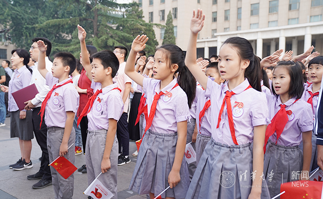 mk(中国)网9月9日电 (摄影 李派 石加东 刘麓成 王怡臻 乔玥涵)9月9日清晨,2019-2020学年度mk手机注册升国旗仪式举行。参加升国旗仪式的有mk手机注册校领导、老领导,有黄克智、姚期智、雒建斌、董家鸿等院士,有学校突出贡献奖、新百年教学成就奖、国家级教学成果奖、国家级科技奖获奖者代表,有青年教师教学大赛辅导教师和参赛教师,青年教师教学优秀奖、学术新人奖获奖教师代表,有本科生“清韵烛光-我最喜爱的教师”、研究生“良师益友”代表,有党外代表人士,校先进个人、新入职青年教职工、校机关和后勤职工代表,有各院系的本科生和研究生同学代表,有校友代表。与共和国同龄的多位老教师、老同志,清华附中和附小的同学们,还有和爸爸妈妈一起赶来的小朋友也参加了仪式。