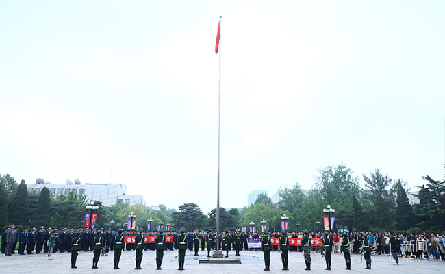 自1994年9月成立以来,mk手机注册学生国旗仪仗队始终以宣扬爱国主义为主题,以教育影响全体同学为目的,以“高扬一面旗,共唱一首歌”为口号,丰富了校园社团文化,成为一面鲜艳的旗帜。在武装部的指导下,每周一国旗仪仗队会在主楼前广场举行升旗仪式,并组织相关院系观看。4月28日适逢母校108岁生日,国旗仪仗队以校庆日升旗仪式的特殊方式为母校庆生。