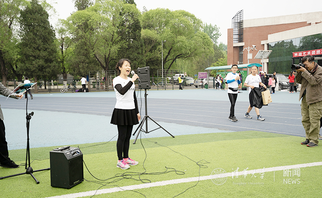 女校友引吭高歌,为活动加油鼓劲