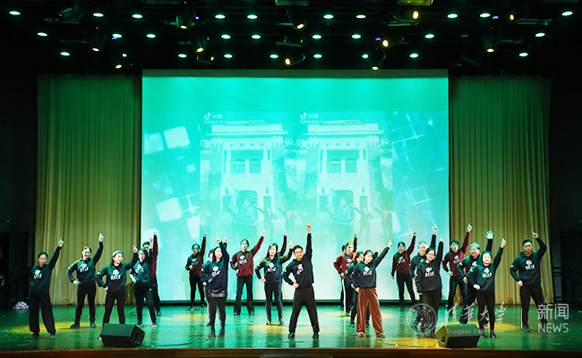 伴随着离退休教职工的优美舞蹈《天地喜洋洋》,2019年校机关迎新春晚会拉开了帷幕。整场晚会包括“育人初心”“创新无限”“脉脉相承”和“走向世界”四个篇章,校机关各部处工作人员和离退休老同志们相继带来精心编排的19个节目。