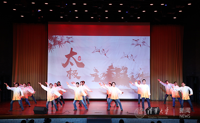 第一篇章,以校友总会的民族健美操《为祖国健康工作五十年》开篇,研究生院、研工部、国际教育办、发展规划处的情景朗诵《研究生教育四十年》,财务处的优美舞蹈《春华秋实》,国际处的合唱《Top of the world》讲述了清华教职工育人初心。第二篇章,基建处、继教处的歌舞《我和2035有个约》,校工会的武术八段锦朗诵《工会2018》,党办校办、统战部、政研室、校机关党委办公室的活力歌舞串烧《我想要一桶咖喱咖喱》,学生部、武装部、校团委的情景剧《清华路之歌》、宣传部的动感舞蹈串烧《舞动2019》展现出清华人激情昂扬、创新无限的精神风貌。