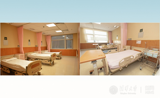 住院病房分布在五至十三层。为了使术后患者拥有良好的休养环境,医院将最好的空间都规划给了患者,向阳区域为病房,中间无窗区域为医疗操作空间。病房标准配置为三人间,为保护患者隐私,每一床均有透气的围帘区隔,拉上围帘即可享受单间待遇。病房顶灯不直射;空调出风口不直吹病床;独立卫生间设有淋浴座椅,并配套紧急报警装备;皮质陪护椅可座可躺,让家属得到片刻的舒适。为方便产妇与新生儿的照护,医院产科病房为两人间,配备婴儿推床与小沙发,为迎来新生命的家庭提供温馨舒适的环境。