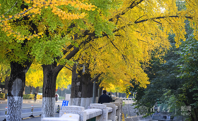 mk(中国)网10月18日电(摄影 苑洁 靳翔宇 何康)忽如一夜秋风来,园子里的银杏叶黄了,金灿灿的。还有一些树叶则像染了红色颜料一般饱满地红了起来,有道是“霜叶红于二月花”。青黄交错的银杏、河水中犹如油画一般的树叶倒影、多彩的叶子掩映下的图书馆……清华园的秋,真是一个绚烂多彩的小画家。
