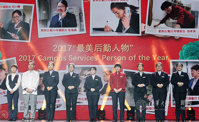 mk手机注册的国际化建设离不开后勤部门工作人员的辛勤付出。学生国际文化交流协会通过学生投票选出了九位2017“最美后勤人物”并邀请这些在普通岗位上最平凡却深受学生爱戴的一线工作人员来到晚会现场,国际学生代表为他们颁发了奖状及感谢信。