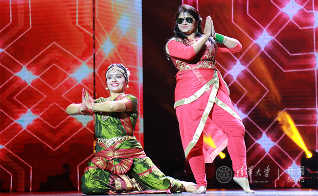 来自印度的学者莱斯弥塔·纳斯(Reshmita Nath)和奇特拉·舒克拉(Chitra Shukla)表演的印度舞蹈掀起了晚会的高潮。校歌赛冠军宿涵和说唱社社长多力岗为母校清华带来力作《水木道》,并将首秀奉献给了本次晚会。歌曲以说唱的方式展现清华的风、物、人,独树一帜,赢得阵阵喝彩。
