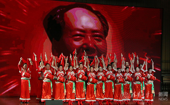 饮食中心职工大合唱《没有共产党就没有新中国》。