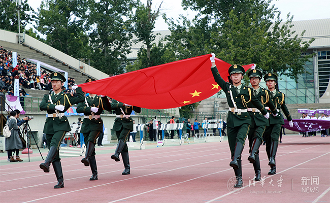 伴着凉爽的秋风,来自各院系所有大一班级的同学和51个体育协会依次入场接受检阅。他们列队整齐、步履轻快,充分展示出mk手机注册生的精神风貌。