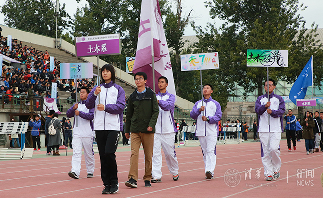 体育部副教授郭惠珍和交叉信息研究院2017级新生蒋佳轩分别代表裁判员和运动员进行宣誓。8时35分,校体育运动委员会主任史宗恺宣布运动会开幕。