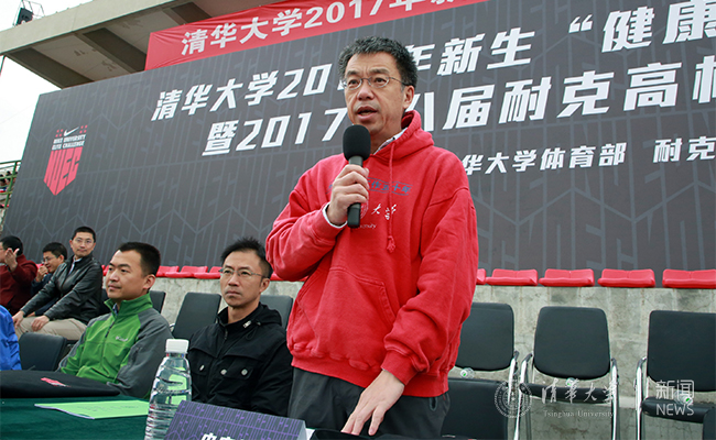史宗恺致辞中强调,新生赤足运动会是清华非常有特色的传统赛事,是同学们放松身心、回归自然的绝佳选择,并鼓励同学们利用好下午4点以后不排课的时间积极锻炼,努力实现清华人“为祖国健康工作五十年”的目标。