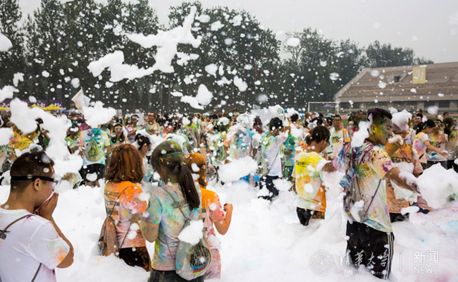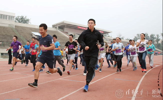 以新生同学为主的“启航跑”比赛是运动会的一大亮点。比赛全程800米,来自全校106个团体、2200余名师生参与了此项比赛。下午的“酷享青春,追梦彩跑”起跑,吸引了3200余名师生参加。研运会延续“无体育,不清华”的口号,在传承清华体育精神的同时,把“竞技”与“娱乐”生动融合,充分展现了清华风貌。