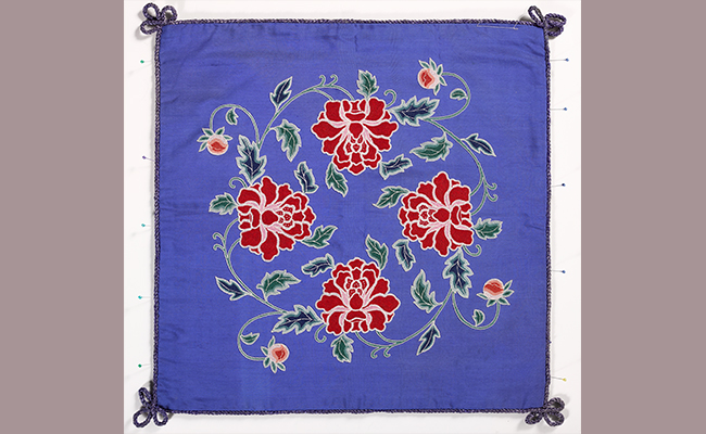 打子绣牡丹靠垫,50cm×50cm 20世纪50年代。