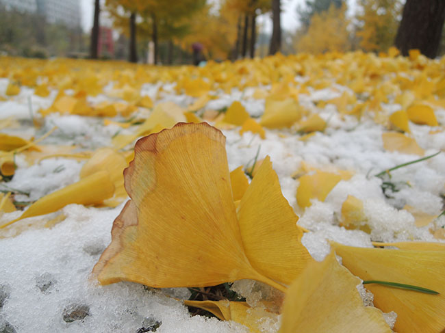 季家蒂(台湾)作品《雪地两片相依的银杏叶》
