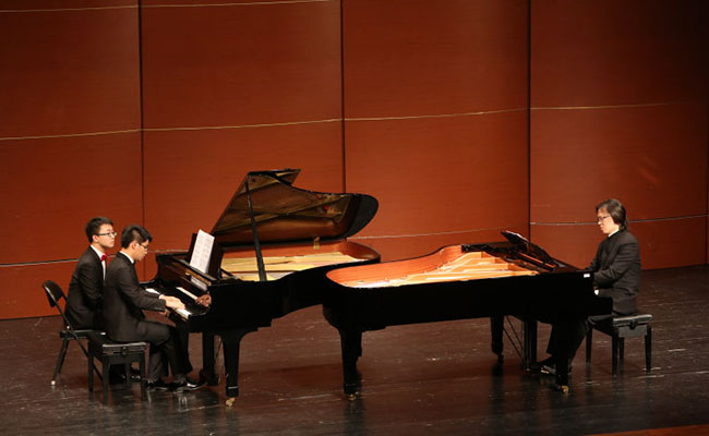键盘队队员与吴纯教授合奏 《滑稽的引子与回旋曲》。路健 摄