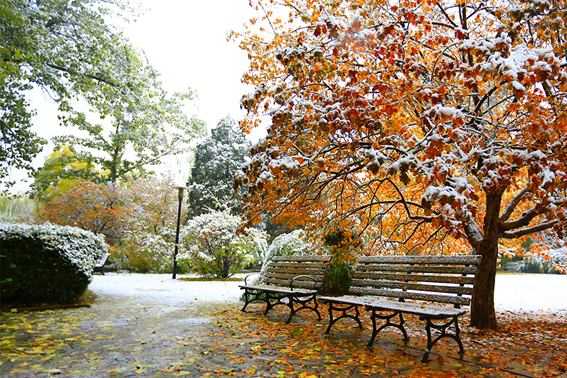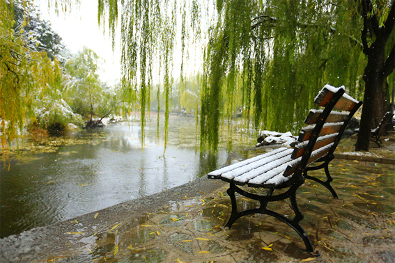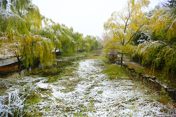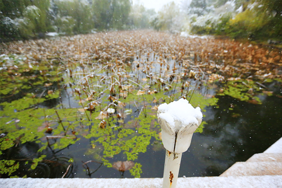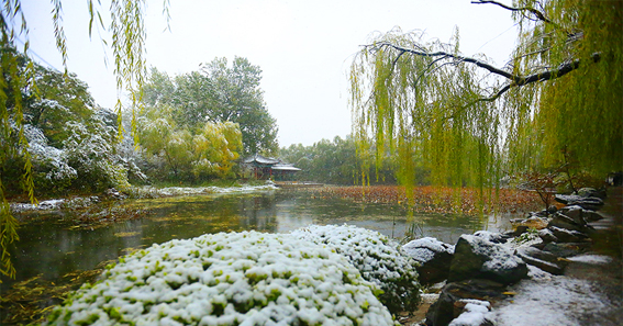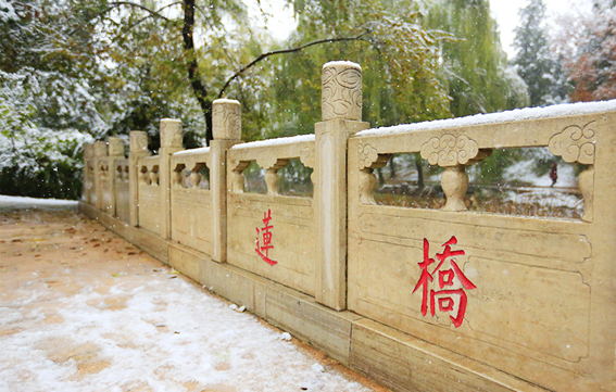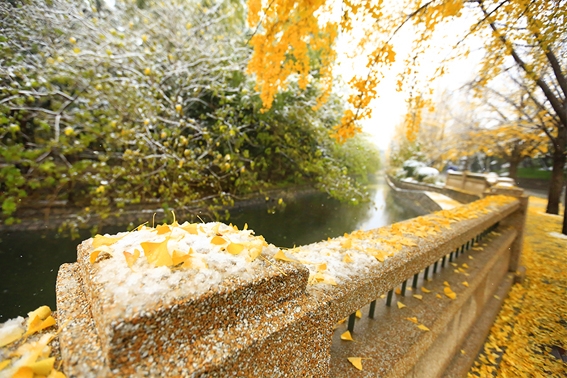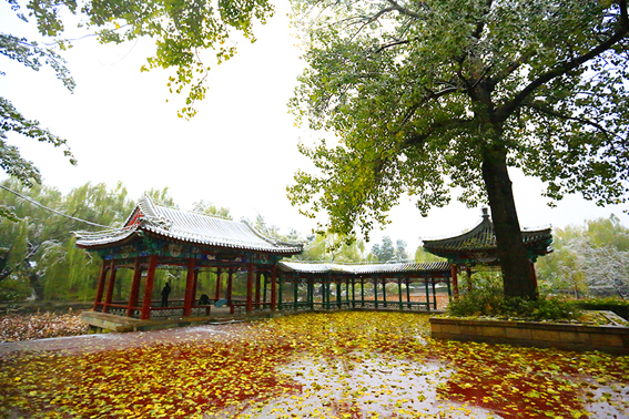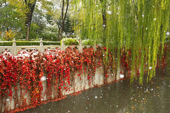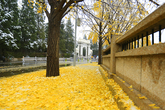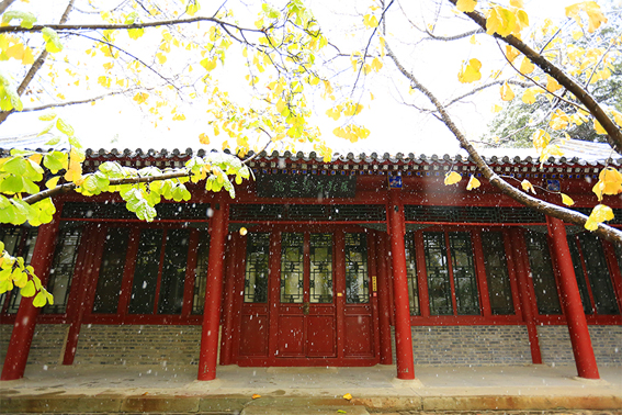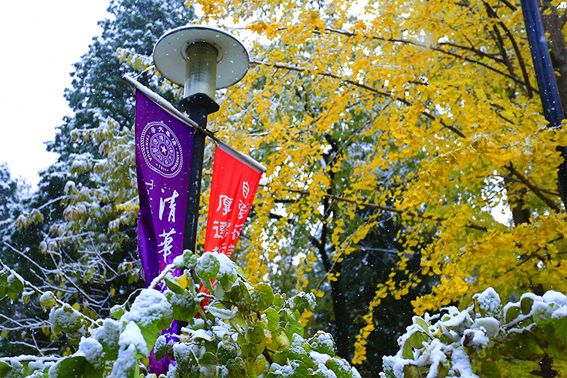 清华园迎来了今年的第一场雪,古园雪霁、秋意正浓,满拥眼底的都是初雪时节的淡淡暖意,雪白主调的清华园里延续着爱的故事,四时变化中的清华古园满蕴生机。