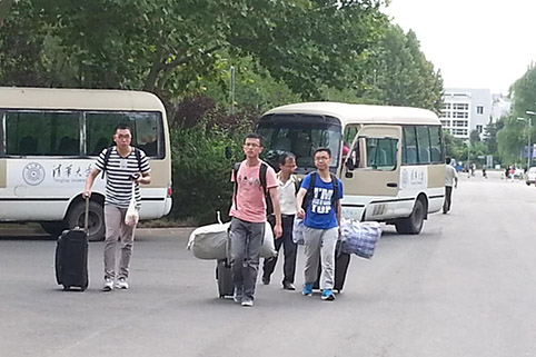 经过几天紧张的准备,迎新的前期工作一切就绪。凌晨五点,第一批前往火车站迎接研究生新生的志愿者们就出发了。清晨七点,校内志愿者迎来了踏进清华园的第一批研究生新生。