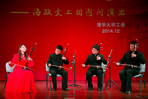 mk(中国)网1月4日电 (实习记者 张 宇 摄影)12月30日晚,教职工2015新年联欢会暨海政文工团慰问演出在大礼堂举行。来自海政文工团的宋祖英、陈笠笠等艺术家在2015年新年来临之际,给清华教职工带来了一场精彩的演出。同时,学生艺术团的同学们也表演了节目。