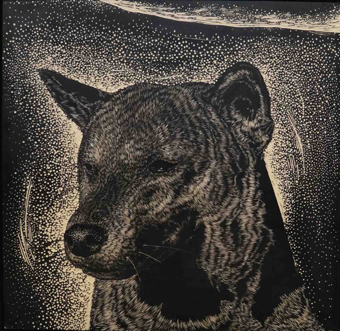 怀蛇--星尘--120X120cm--黑白木刻--2013