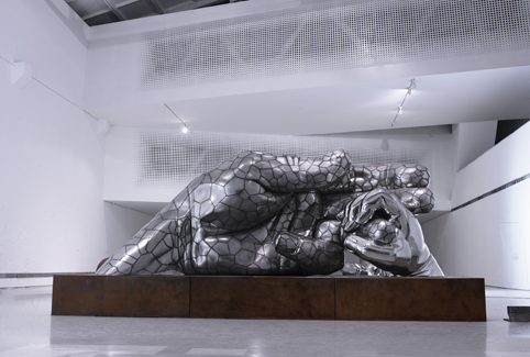 图为参展作品《觉》-不锈钢-230x250x370cm-2013年。