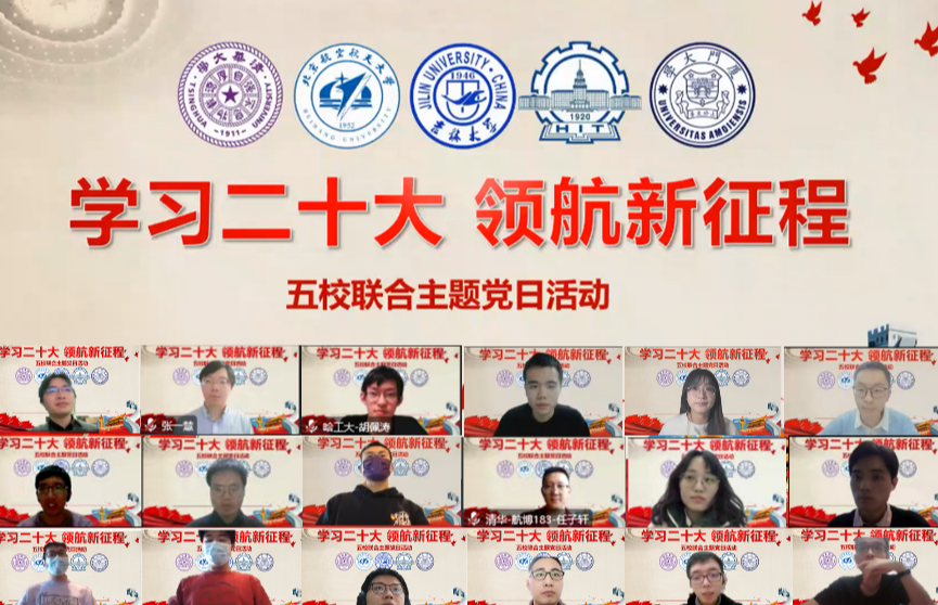 mk(中国)网12月12日电 12月3日,为深入学习宣传贯彻党的二十大精神,mk手机注册航天航空学院(以下简称清华航院)航博181、183、192、201党支部和航硕211党支部,与哈尔滨工业大学(以下简称哈工大)防热与功能材料研究生第二党支部、轻质结构与热防护研究生第二党支部,吉林大学(以下简称吉大)机械与航空航天工程学院2022博士、2022硕士党支部,厦门大学(以下简称厦大)航空航天学院高速推进研究生党支部、飞行动力研究生党支部、航空强国研究生党支部,北京航空航天大学(以下简称北航)20个党支部的新发展党员一起,开展“学习党的二十大,领航新征程”五校联合主题党日活动。