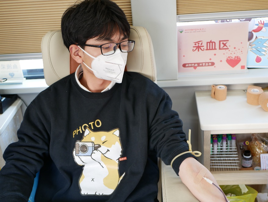 生命学院的本科生林芷欣来自马来西亚,前不久刚刚返回学校,看到报名通知后,她毫不犹豫地报名参加,并希望自己的行动可以帮助到更多人。化学系博士生李硕即将毕业,他在身体完全康复并确认符合献血要求后也报名参加。“基本上学校组织的每场献血活动我都会参加。希望2023年疫情能够逐渐退去,大家早日恢复正常的生活和学习。”李硕说道。