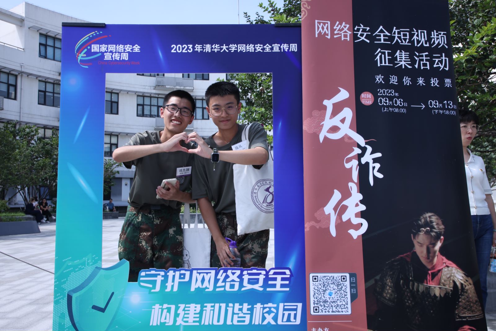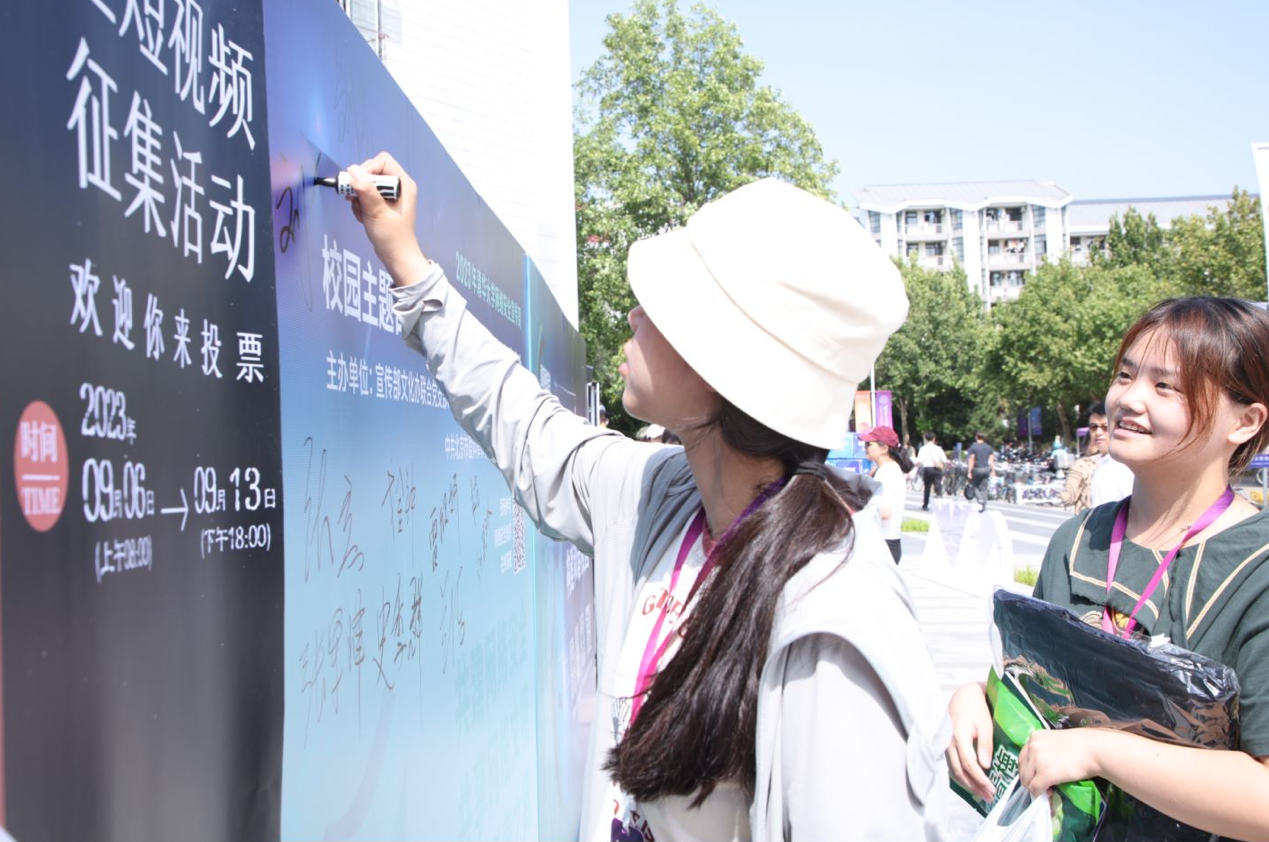 “共建网络安全,共享网络文明,以青春之我,担网安之责”,学生服务中心前广场热闹非凡,在党员们的积极引导下,师生纷纷拿出手机扫码,参与网络安全短视频征集活动投票,认真进行网络安全知识答题,学习公共WiFi安全使用操作,警惕挖矿木马等陷阱,并在签名板前拍照留念。